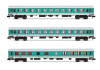 DB AG, 3-unit pack regional coaches, mintgreen/white livery, including 1 x control cab coach, 1 x Aby coacha and 1 x By coach, period V, N ...