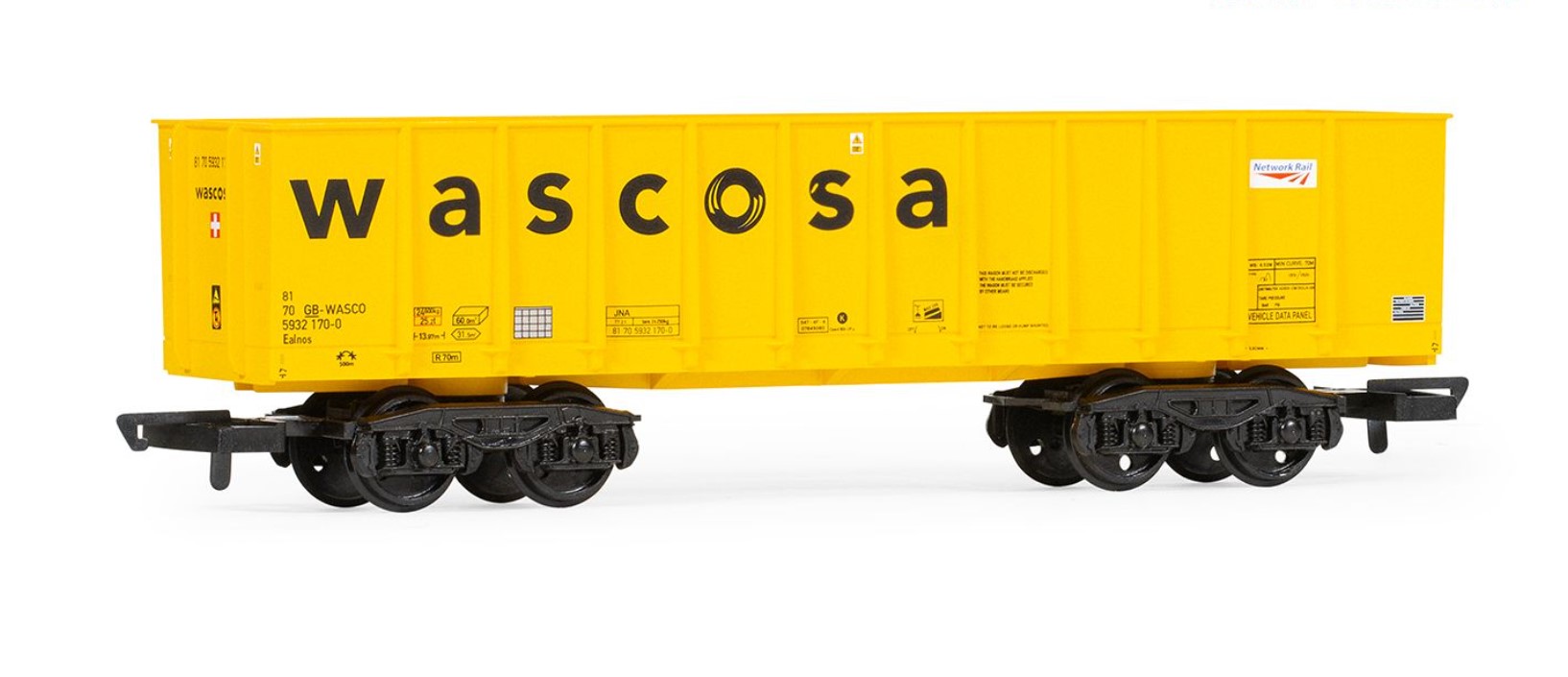 Finished in the bright yellow livery of supplier Wascosa, wagon No. 70 5932 170-0 is part of the Network Rail infrastructure fleet.