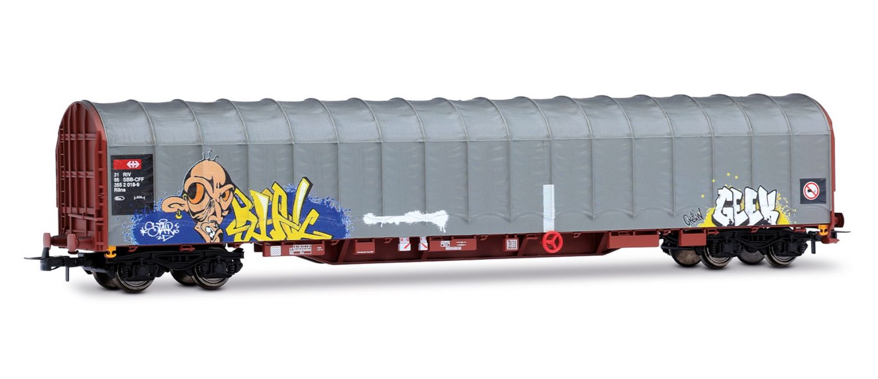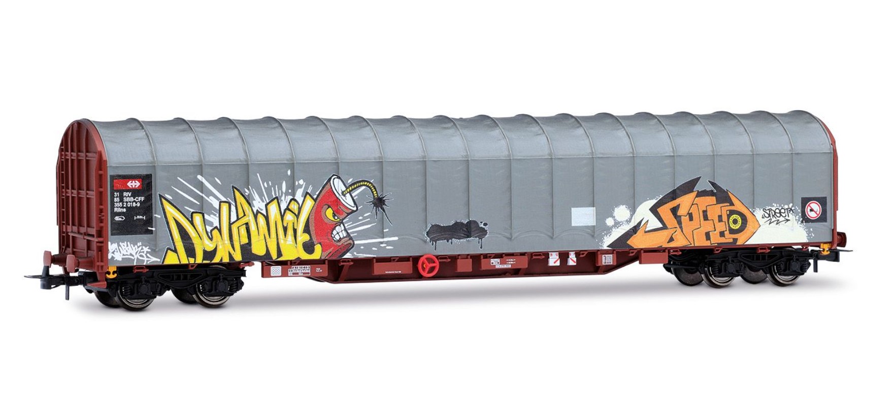 SBB, 4-axle tarpaulin wagon, Rils type, livery with graffiti, ep. V.