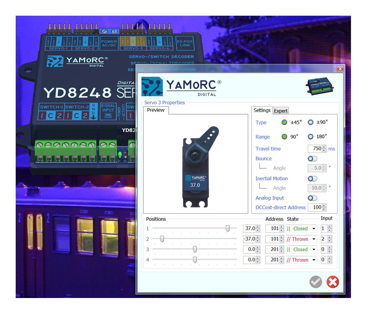 - până la 12 servomotoare în total utilizând opțiunea adaptor YD8291