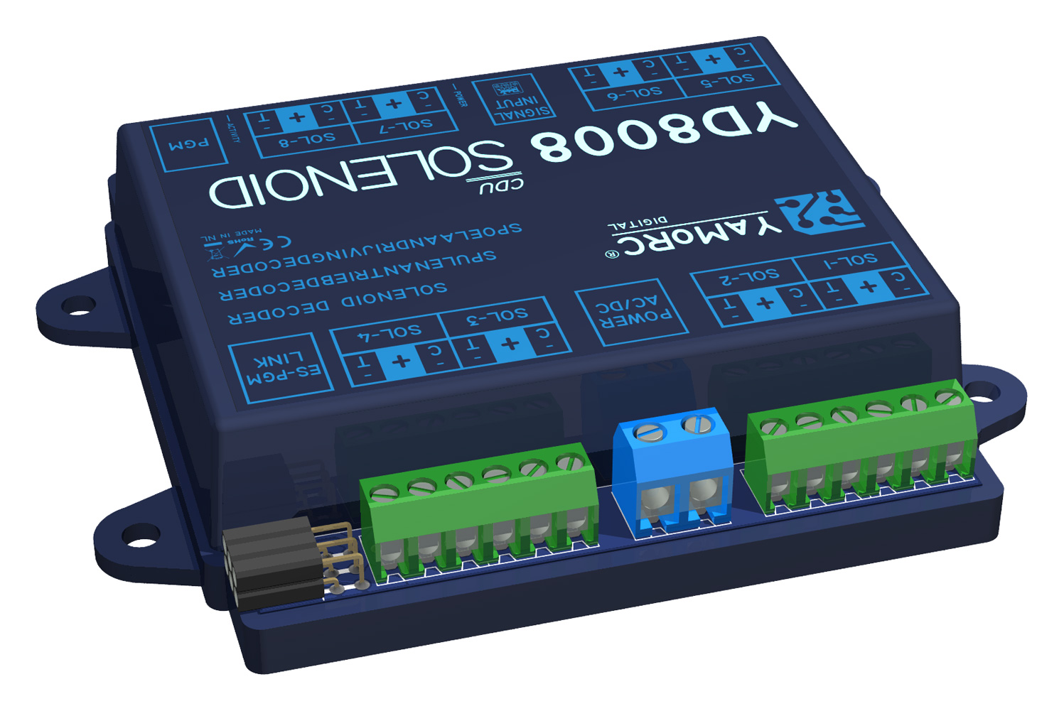 Special conceput pentru a face față motoarelor electromagnetice (actionari cu bobina) de curent mare, YD8008 este un decodor electromagnetic cu 8 ieșiri și CDU inteligent.