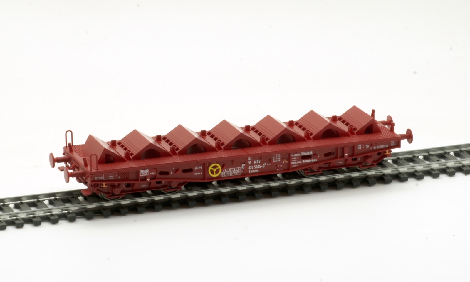 Vagon platforma tip Shmms, cu suport special pentru transport role de tabla, MAV.