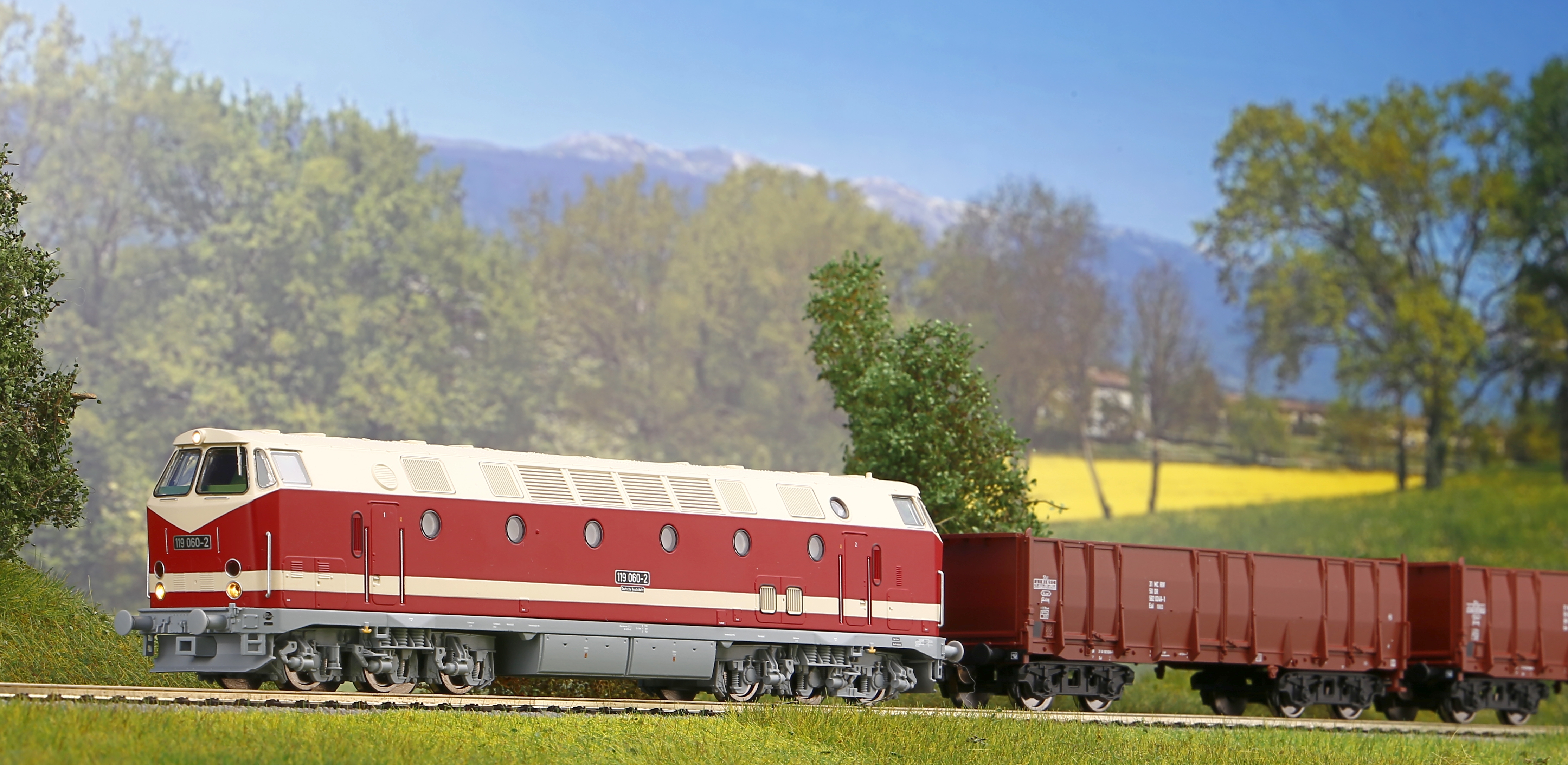 Setul este compus din locomotiva diesel BR119 si trei vagoane gondola Eas.