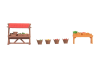 Setul contine : valize, carucioare bagaje, compostor bilete, scaune peron, automat pentru bilete, panou rute tren.