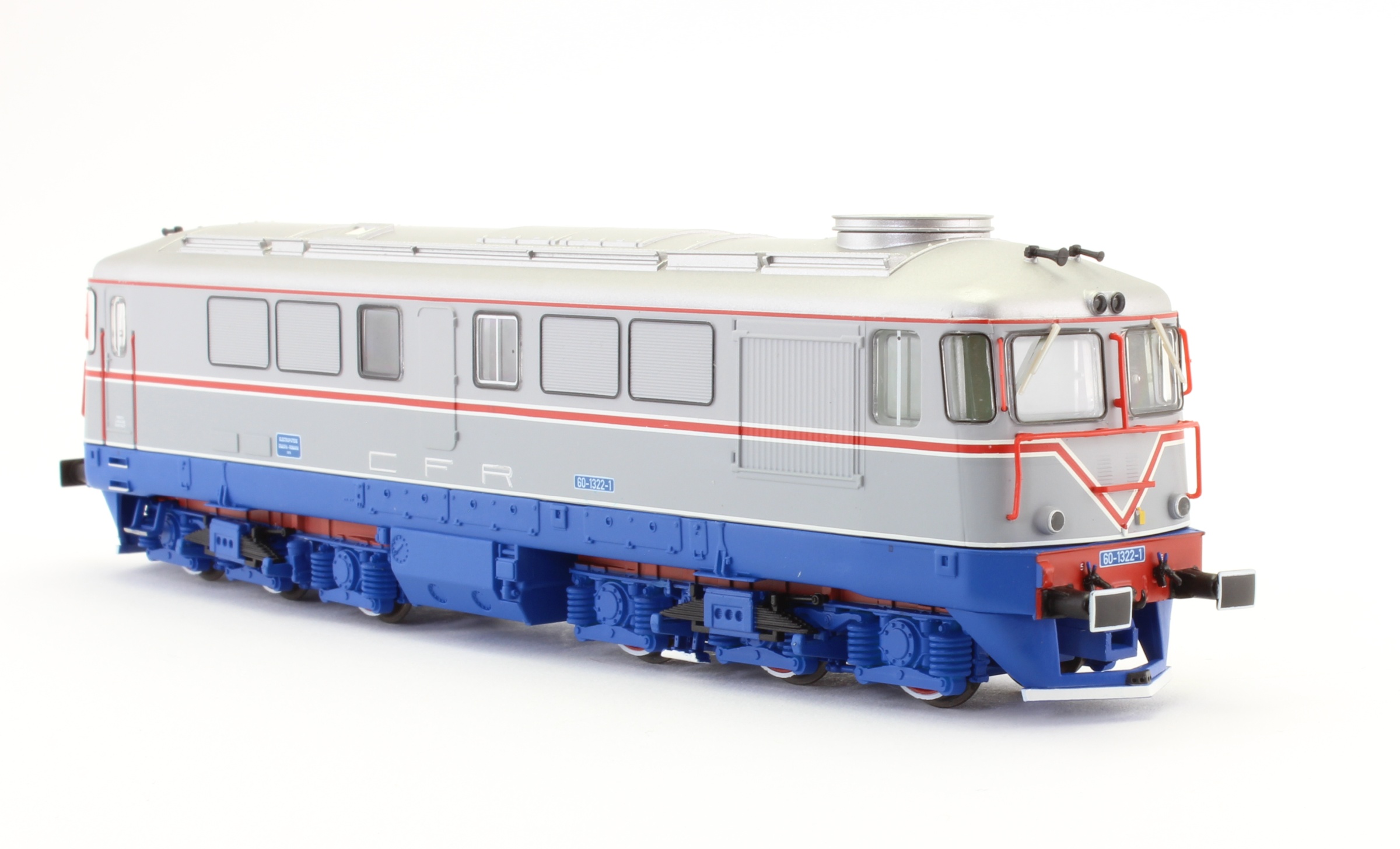Diesel locomotive 060 DA, CFR, series 60-1322-1, in classic livery with "V" stripe.