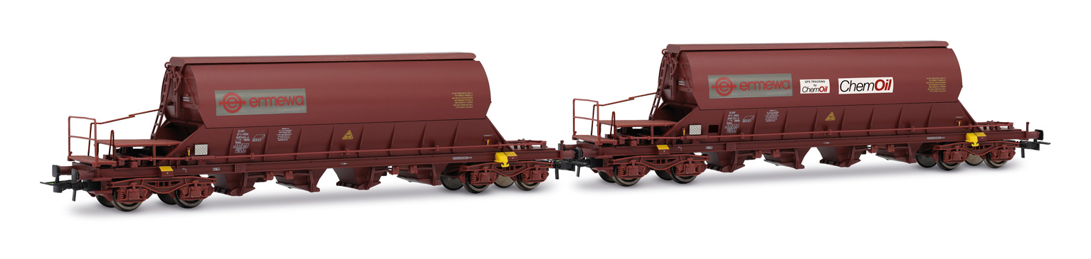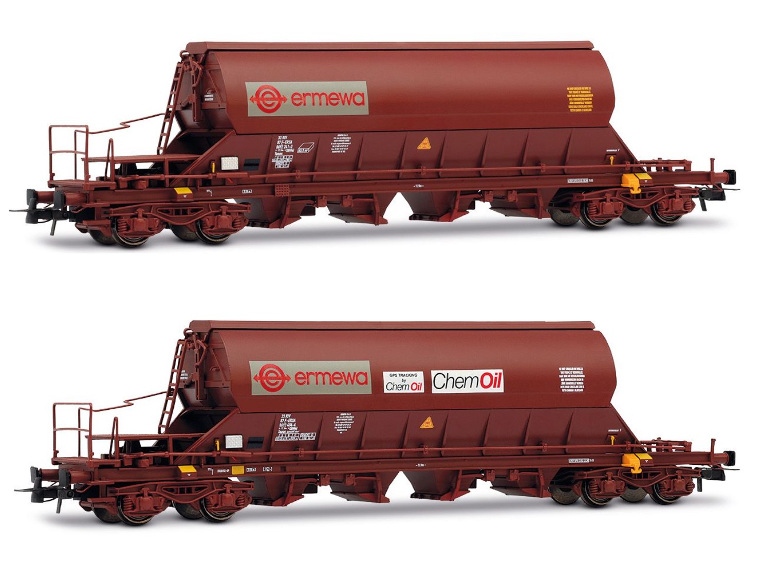 F-ERSA, 2-unit set of 4-axle hopper wagons Taoos, brown livery, "Ermewa/Chemoil", ep. VI.