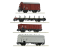The set consists of a covered freight wagon type Gklm, a rail transport wagon type Kkp, an open freight wagon type E and a refrigerated wagon type Icr.