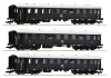 Set 3 vagoane calatori clasa a 2-a (ex DRG), MAV. Au mecanism de cuplare apropiata NEM 362, lungimea totala peste tampoane 723 mm. La ...
