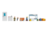 Set 3 figurine si accesorii. Scara H0. Ideale pentru a anima cladirile de pe diorama.