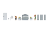 Set 2 figurine si accesorii. Scara H0. Ideale pentru a anima interiorul cladirilor de pe diorama.