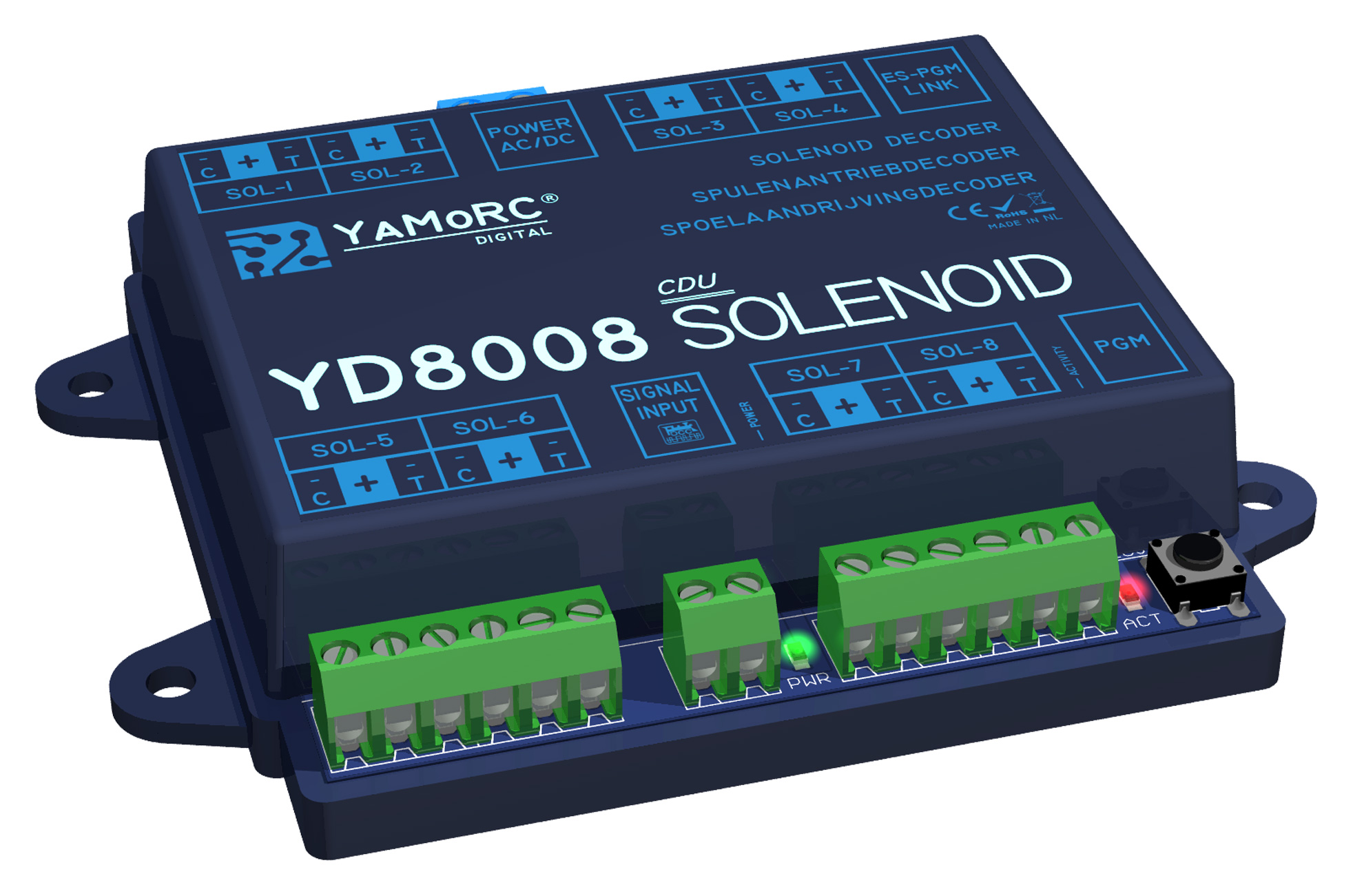 Special conceput pentru a face față motoarelor electromagnetice (actionari cu bobina) de curent mare, YD8008 este un decodor electromagnetic cu 8 ieșiri și CDU inteligent.