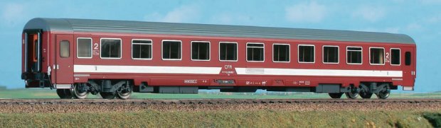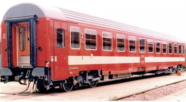 Vagon de tipul AVA 200, clasa a 2-a, CFR, Ep.V. (Versiunea rosie cu dunga albă si logo C.F.R vechi)