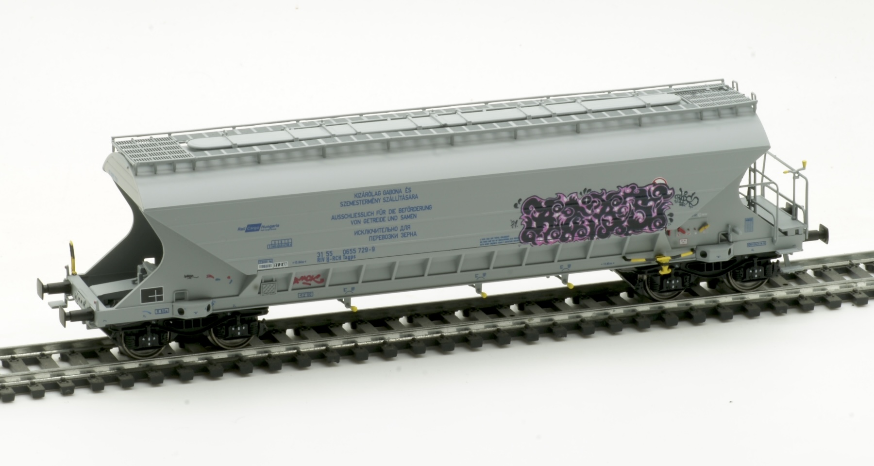 Vagon pentru transport cereale, tip Tagps, al companie Rail Cargo Hungaria.