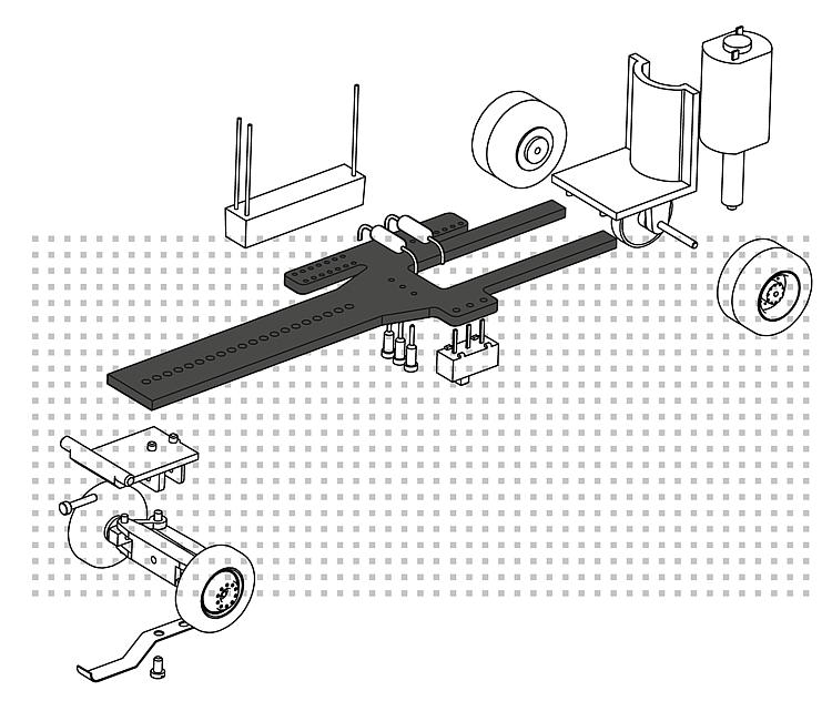 Setul conține toate componentele vehiculelor necesare pentru asamblarea unui șasiu pentru un sistem de mașină cu două axe complet funcțional (autobuz și camion), cu excepția acumulatorilor.