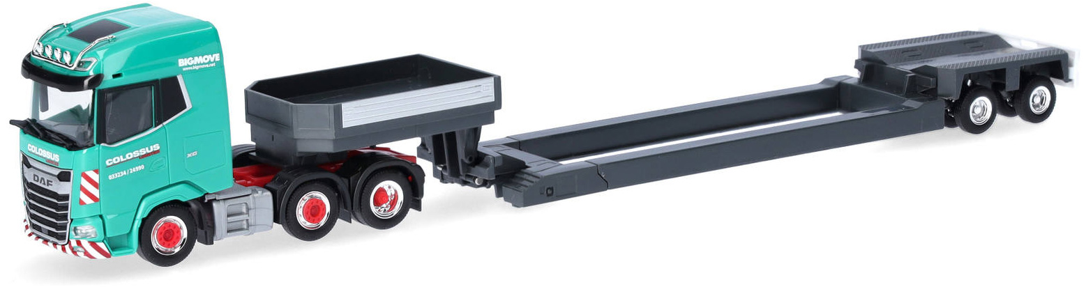 Camion DAF XG (6x2) cu trailer pentru transporturi agabaritice, scara H0 (1:87), Herpa.