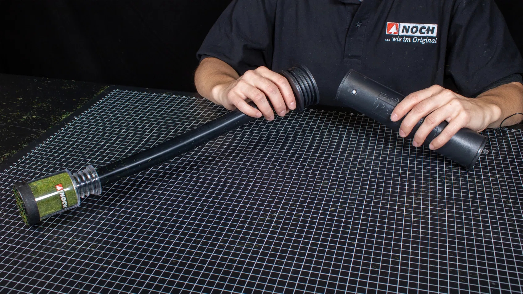 Este compatibil cu aplicatoarele Noch Grasmaster 4.0 si Grasmaster 4.0 PROFI. Este astfel conceput pentru a incapea in locurile greu accesibile de pe diorama, bratul flexibil facandu-l foarte usor de folosit.