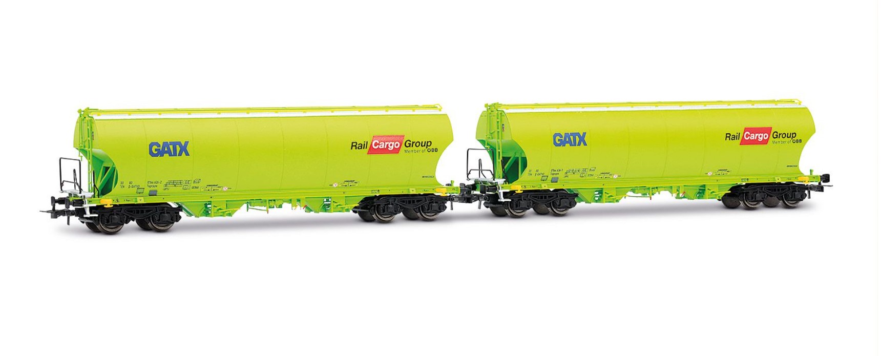Set vagoane pentru cereale cu pereti curbi, ale companiei GATX,