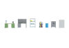Setul contine : 2 bancuri de lucru, raft, butoi, dulapuri cu sertare, echipament de sudura.