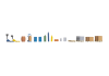 Setul contine : valize, carucioare bagaje, compostor bilete, scaune peron, automat pentru bilete, panou rute tren.
